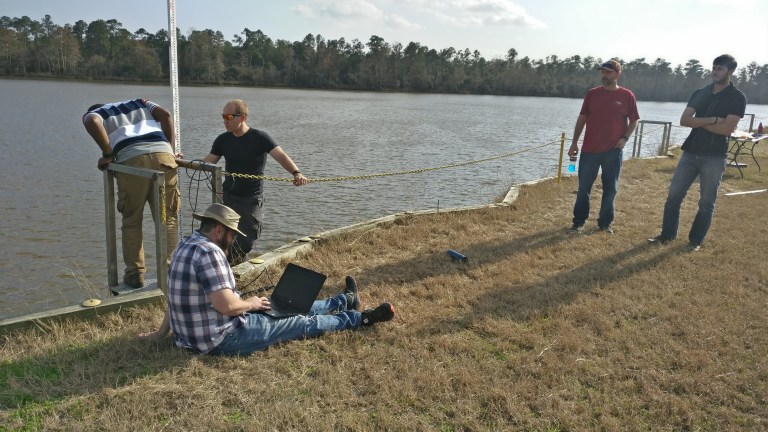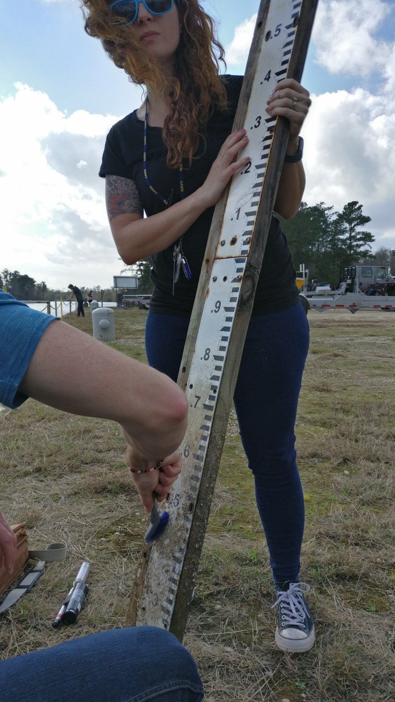 Paralleelselt anduritega võtame lugemid manuaalselt. Latid on eelmisest aastast kaetud mustusega, peame puhastama. Maas vedelb rõhuanduri ülemine osa, see kus on ühendus arvutiga